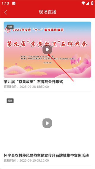 2、在现场直播页面选择目标直播回放,进入该直播详情页。