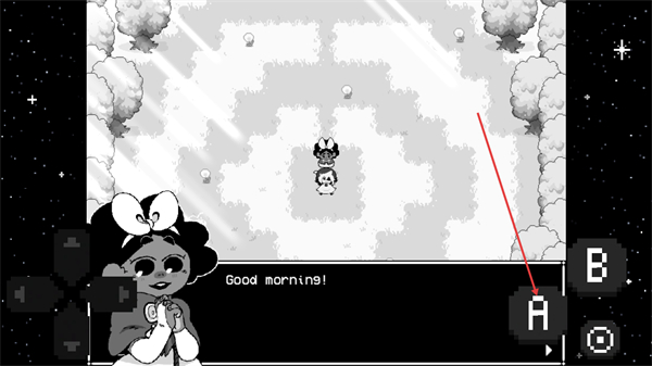 2、在当前场景中看到角色的Goodmorning对话后,点击界面中的A键,即可推进这段对话并继续后续互动。