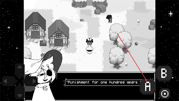 4、看到界面中的Punishmentforonehundredyears对话后,点击A键进行角色对话选择,进而解锁后续剧情与场景。