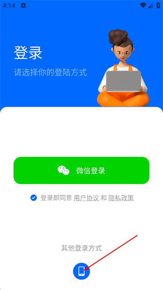 3、在登录页面,点击其他登录方式里的手机图标,切换至登录模式。