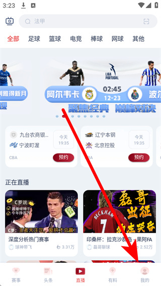 1、打开人人看球,点击底部导航栏的我的,进入个人中心页面。
