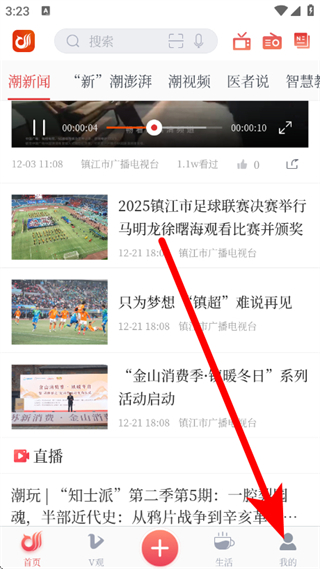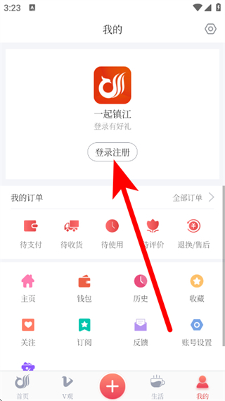 1、打开一起镇江,点击底部我的,进入个人中心页面。