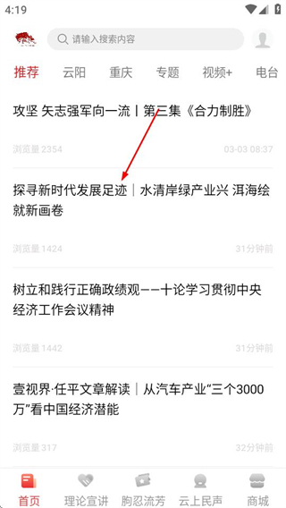 1、理响云阳在首页选择目标新闻,进入新闻详情页面。