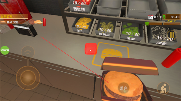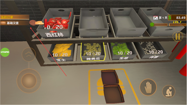 1、在食材区获取西红柿等基础汉堡所需食材,准备进行餐品制作。