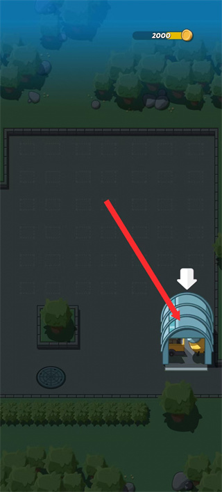 2、在公园场景中,点击红色箭头指向的机库建筑,进入设施购买界面,准备解锁公园的运营载具。
