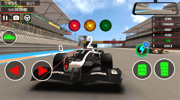 2、等待信号灯变绿后,通过方向键操控赛车起步,借助加速键提升车速。