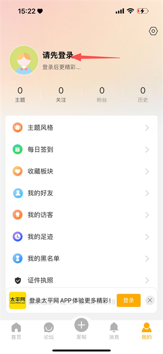 2、在太平网APP首页,点击底部的我的选项,进入个人中心页面。