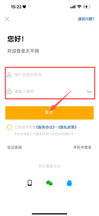 1、阅读服务协议和隐私政策后,点击同意按钮,进入太平网APP。