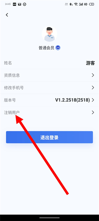 3、在个人信息页面,点击注销用户,进入注销账号页面。
