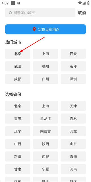 3、在城市选择页面点击目标城市,完成该城市地区的添加。