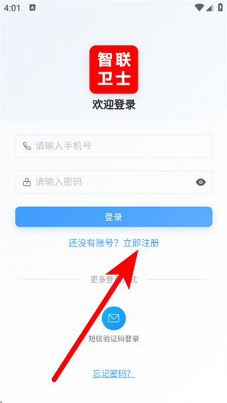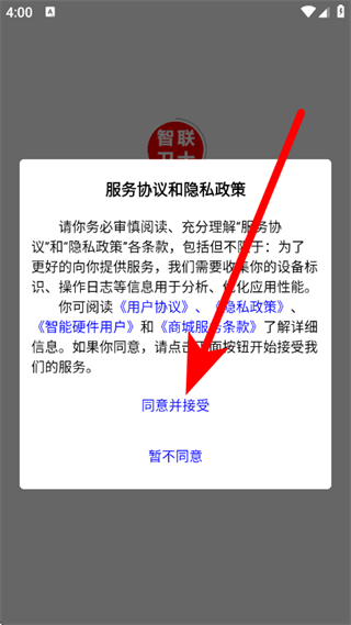 1、打开智卫云,在弹窗中点击同意并接受,进入欢迎登录页面。