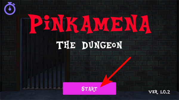 1、进入游戏界面后,点击红色箭头指向的START按钮,开启Pinkamena地牢的探索流程,这是进入游戏的关键操作。