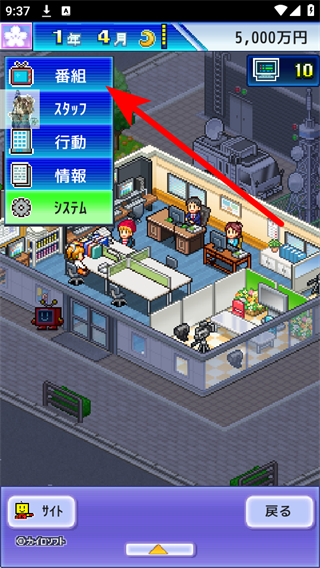4、在菜单中选择番組节目选项,开始规划、制作电视节目,推进电视台的运营流程。