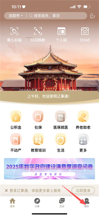 1、在辽宁通首页,点击底部的我的选项,进入个人中心页面。