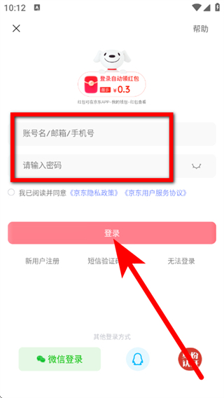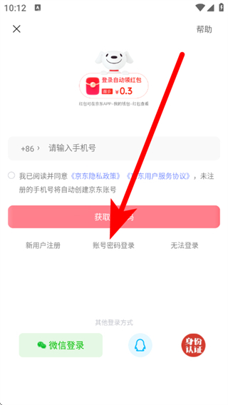 3、在登录界面,点击账号密码登录,进入账号密码登录页面。