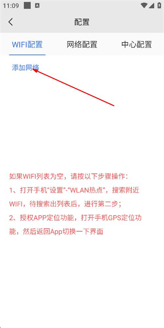3、在配置页面点击添加网络选项,弹出WiFi信息输入框。