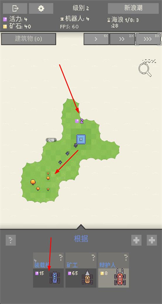 1、在地图场景部署收集单位,前往资源点收集矿石,积累基地建设物资。