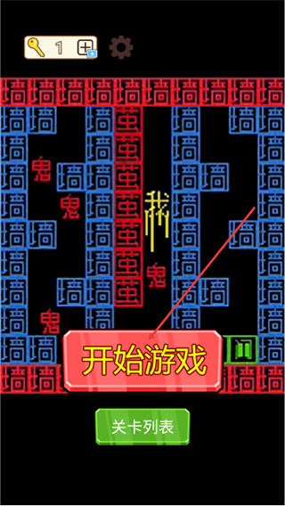 文字游戏鬼打墙是一款复古像素风的文字闯关类作品,以独特的文字地图为核心玩法,搭配紧张刺激的追击设定与富有压迫感的背景音乐,营造强烈的沉浸氛围,关卡中隐藏喷电机关、移动文字等多种陷阱,再加上独创的群鬼模式,让使用者在文字构成的世界里体验紧张刺激的逃亡乐趣。