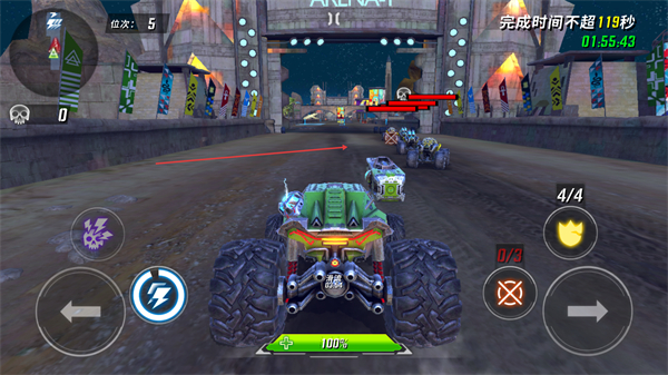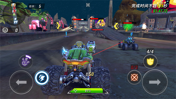 3、持续操控车辆前进,超越敌方车辆,缩短完成时间,推进赛程。