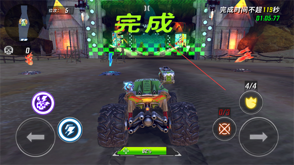 4、冲过终点线,出现完成提示,完成本次时间竞速关卡。
