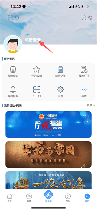 2、在海博TV首页,点击底部的我的选项,进入个人中心页面。