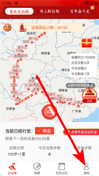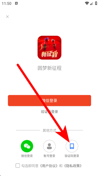 1、在圆梦新征程页面,点击底部我的,进入登录方式选择页面。