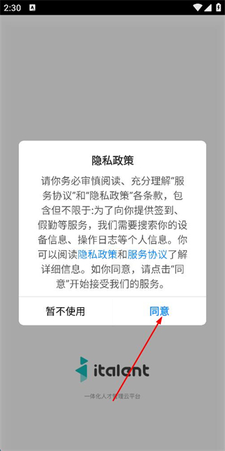 1、在使用协议隐私政策弹窗中点击同意按钮,进入登录页面。