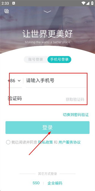 3、在手机号登录界面填写信息后,勾选协议并点击登录按钮完成登录。