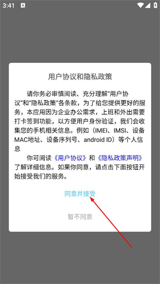 1、在用户协议和隐私政策弹窗中,阅读后点击同意。