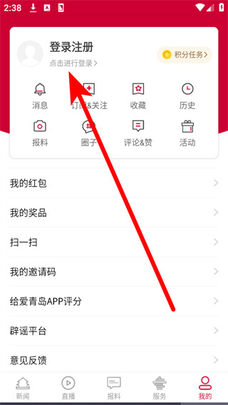 1、打开爱青岛,点击底部导航栏的我的,进入个人中心页面。