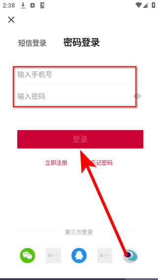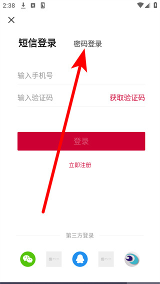 3、在登录界面中,点击密码登录,切换到密码登录模式。