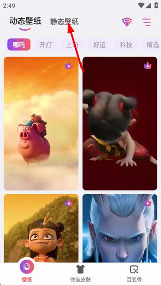 1、进入一糖壁纸后,点击静态壁纸选项,可切换到静态壁纸分类页面。