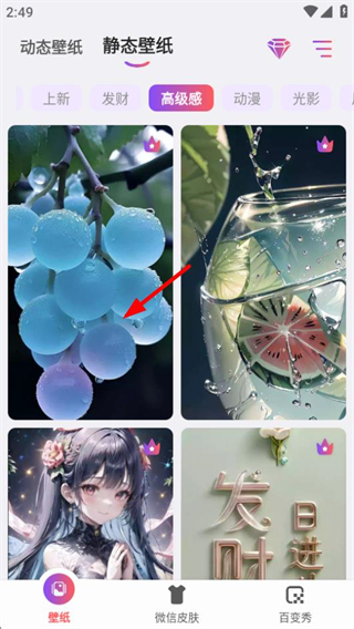 2、在静态壁纸页面,点击高级感标签,可切换到对应风格的壁纸列表。