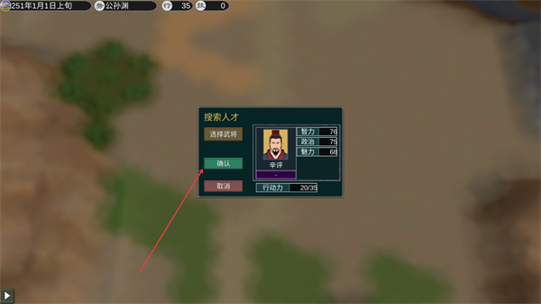 3、在搜索人才界面选择武将,点击确认完成招募,获得新武将。