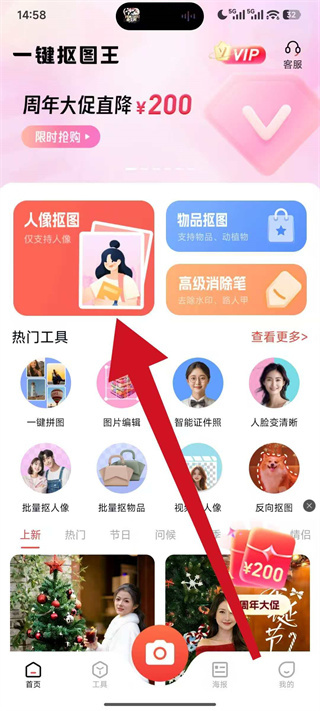 2、在主界面点击人像抠图功能入口,进入图片选择页面。