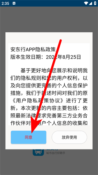 1、打开安东行,在弹窗中点击同意按钮,进入登录页面。