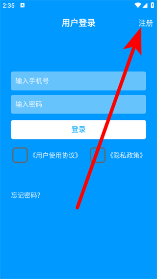 2、在用户登录页面,点击右上角的注册,进入账号注册页面。