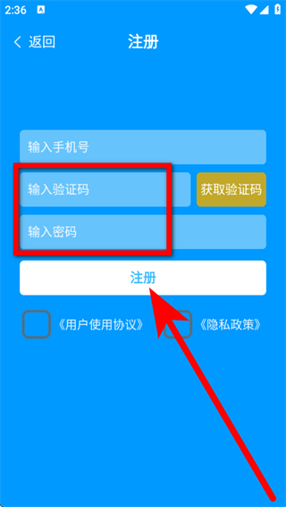 4、输入验证码和设置密码,勾选后,点击注册,完成账号注册。