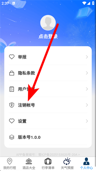 2、在个人中心页面,点击注销帐号,进入注销账号页面。