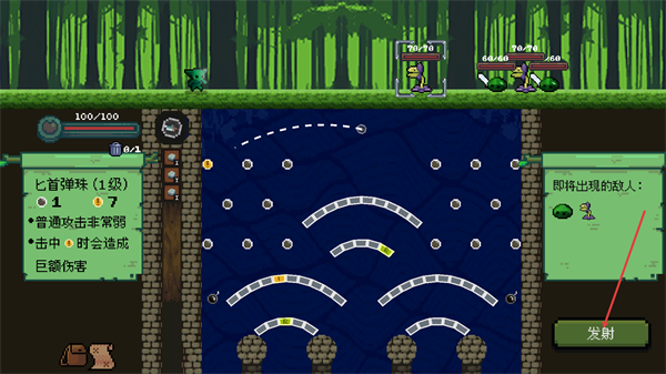 3、在关卡界面调整好弹珠的弹射轨迹后,点击右侧的发射按钮,让弹珠弹射攻击,以此推进关卡进程。