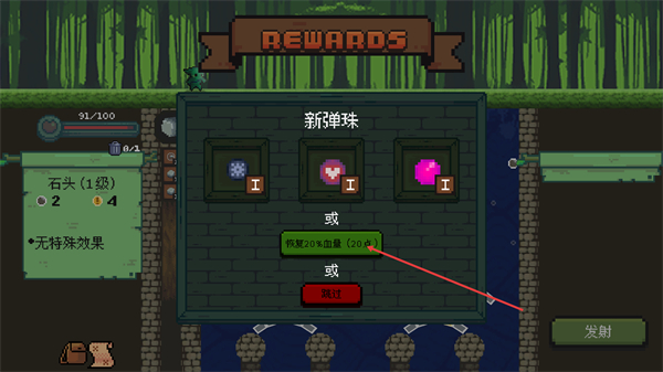 4、完成关卡后进入奖励界面,可选择恢复20%血量提升续航,也可选新弹珠或跳过,助力后续游戏进程。