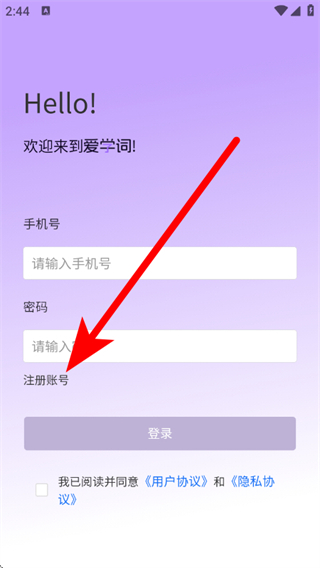 2、在爱学词的欢迎页面,点击会员用户登录,进入登录页面。