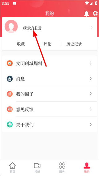 2、在个人中心页面,点击登录注册区域,可进入登录页面。