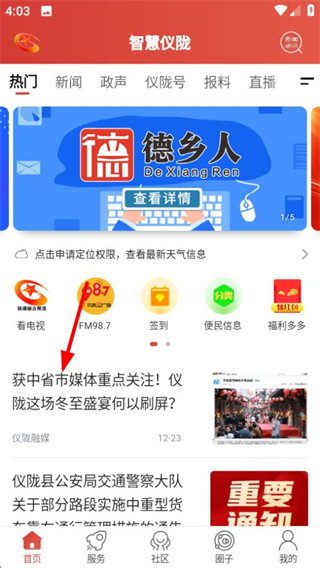 1、进入智慧仪陇后,点击目标新闻内容,可进入该新闻的详情页面。