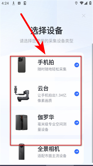 4、在选择设备界面,挑选需要使用的采集设备类型,完成设备添加的前期选择。