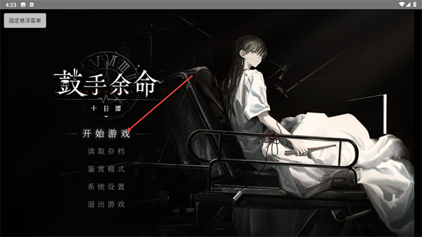 1、进入鼓手余命十日谭的主界面后,可点击开始游戏开启新游戏,也可通过读取存档继续进度还能选择其他功能选项。