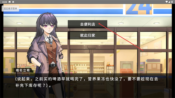3、在当前选择界面,可根据提示点击去便利店补充物资,也可选择就此归家来推进对应的剧情分支。