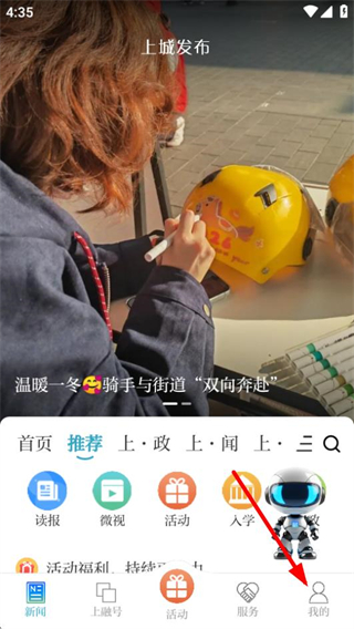 1、进入上城发布后,点击底部的我的选项,可进入个人中心页面。