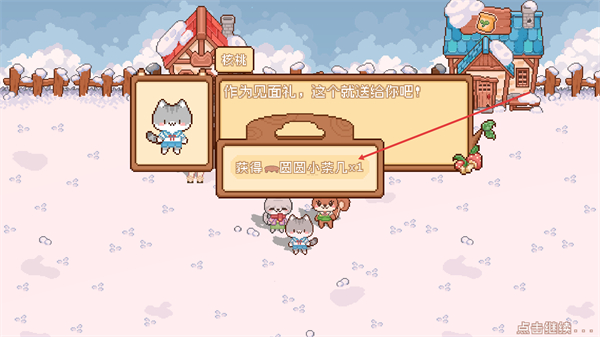 3、完成与核桃的对话互动后,将获得圆圆小茶几×1作为见面礼,点击继续游戏。