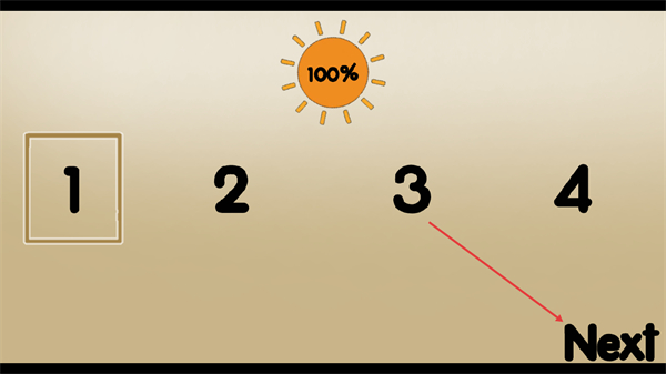 2、当前是关卡选择界面,1号关卡已解锁,点击Next按钮可查看后续更多的关卡内容。